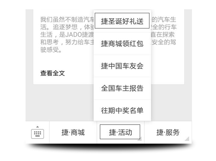 請關注并打開公眾號捷渡中國  回復關鍵詞圣誕節參與活動  也可以點擊捷渡中國公眾號菜單鍵  捷·活動—捷圣誕好禮送參與活動