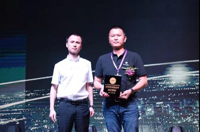 接下來是大會的頒獎環(huán)節(jié),由廣匯集團集采總經(jīng)理 何思先生為JADO捷渡智能(中國)頒發(fā)了“2018年度中國4S店集團杰出合作獎” 獎項,JADO捷渡智能(中國)總經(jīng)理陳問文先生代表JADO捷渡智能(中國)上臺領(lǐng)獎。